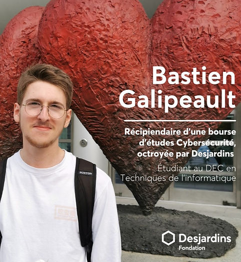 L'École Cybersécurité fait appel à la Fondation Desjardins pour octroyer, selon nos propres critères, 5500$ en bourse chaque année. Grâce à ce partenariat avec le Mouvement Desjardins, des étudiant.e.s au parcours inspirant sont aidés financièrement dans leurs études chaque année.